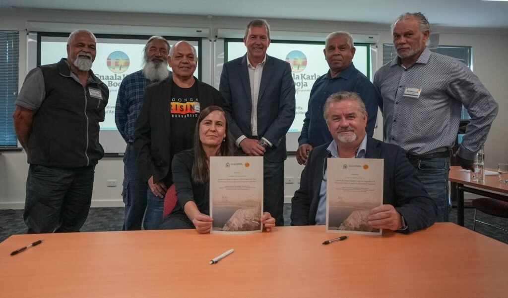 Our signing ceremony with Minister Reece Whitby recognises an agreement that finally gives our Noongar people a seat at the decision-making table, and a say in the management of the National Parks, State Forests, and Reserves on Gnaala Karla Booja, along with the Department of Biodiversity, Conservation and Attractions (DBCA).